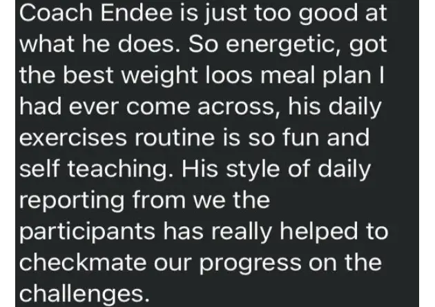 I enjoyed this challenge 100%, so glad I joined. The coach and his team are very accommodating and well knowledgeable in Weightloss. I lost 3kg in the course of the challenge