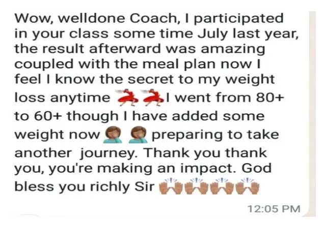 The FAT MUST GO Challenge is worth ₦95,000/Month but with just ₦12,000/Month —that’s not even ₦500 a day! You can join today and finally lose that stubborn weight in just 3 months!