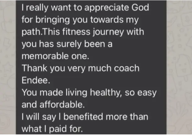 Fat must go challenge was the game changer for me. I enjoyed the workout as I didn’t have to struggle to check online with the moves. All I needed to do was to play the videos and follows the exercises. They were very simple and effective. I lost 9.3kg while in the challenge. Also, the coaches were very supportive. I learnt a lot and I recommend them for anyone trying to achieve healthy weight loss.